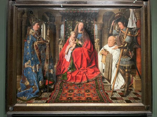 この絵は、ブルッヘ出身の聖職者ヨリス・ファン・デル・パーレが自身の墓碑祭壇画用にとヤン・ファン・エイクに1434年に制作を依頼し、1436年に完成したとされる、オーク板に油彩で描かれた大作です。